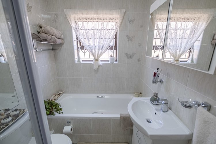 Move-in ready property in a secure complex close to the beach, schools, higher educational facilities, transport and shopping centers. Modern open-plan kitchen with quality finishes and fittings. Paved courtyard. Defy 70cm oven, glass hob with 1 gas plate, extractor fan, double sink and space for a dishwasher. Tiled lounge/dining area flows to a North facing patio and garden. Three well-sized bedrooms with quality built in cupboards and laminate flooring. Single garage on remote with cupboards that can stay. Wendy house included with plumbing for appliances. Trellis doors. Curtains optional. Water tank. Paved courtyard with outside trough and braai. Fibre installed. Electric fencing. Cameras at both entrances. Complex gardener. Chairman and Trustees live in the complex. Secure, well-managed estate with a communal park, braai area for private functions and space for children and pets to enjoy. Owners retiring after many happy years. Absolutely nothing to do – just move in! ADT alam. 2 x Complex water tanks for communal use. Electric fencing. Remote entry gates. Cameras. Levy: R1 268 (incl. water & sewage) Rates: R1 065 Dwelling Size: 101 m² Don't miss viewing this lovely home. Easy access.