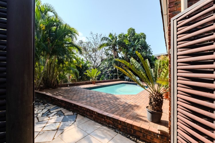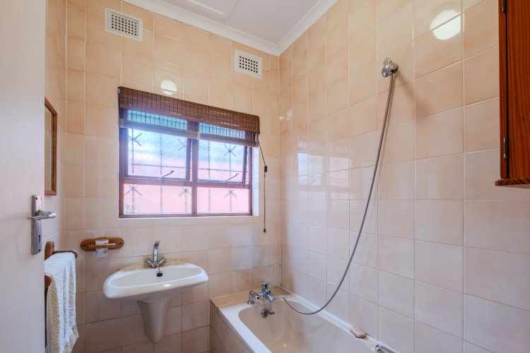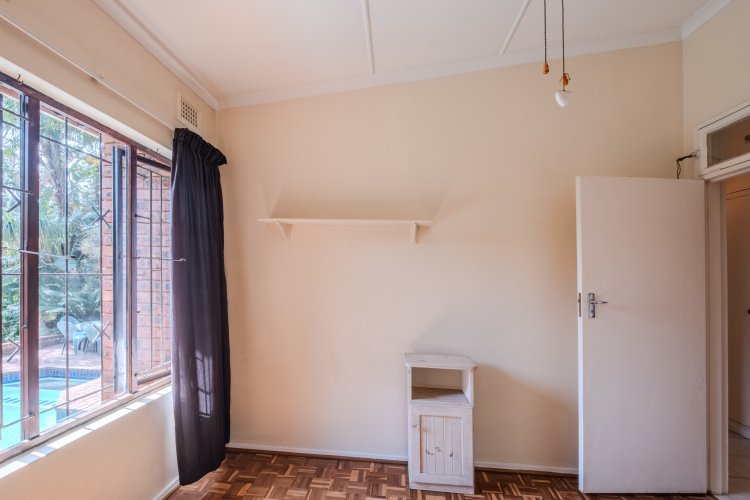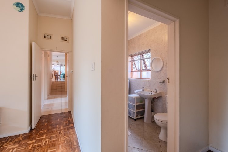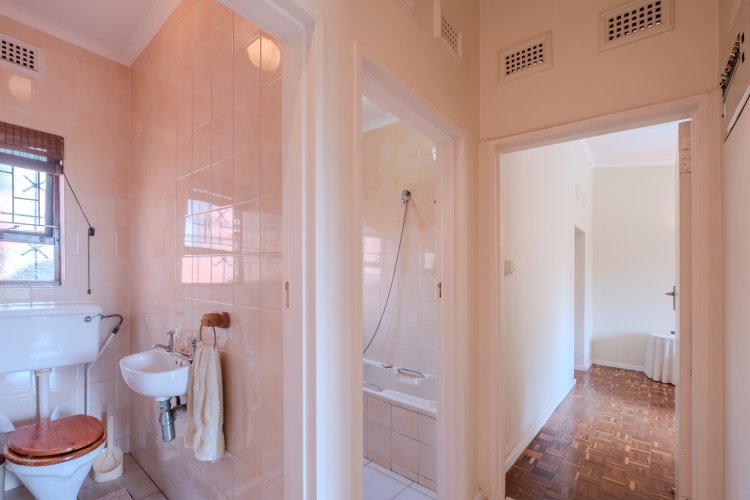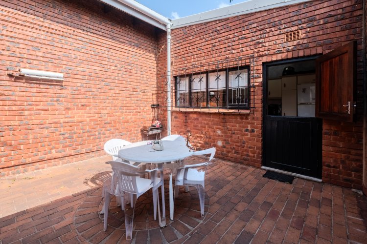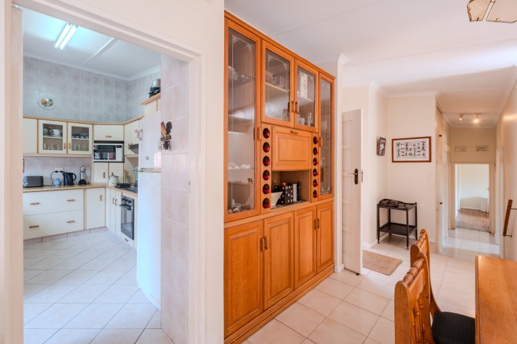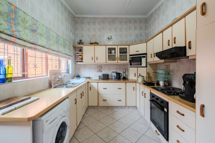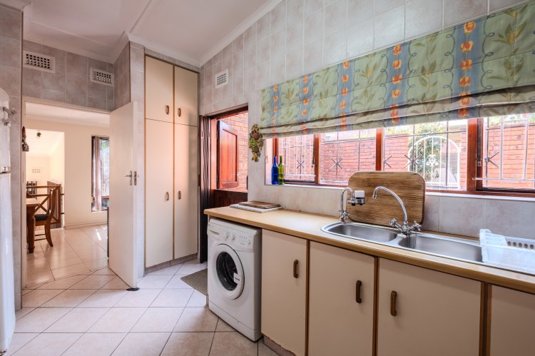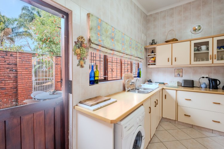 The kitchen offers ample cupboard space and easy access to a spacious courtyard that connects directly to the kitchen. For added convenience, the property includes a domestic flatlet with shower, ideal for staff.