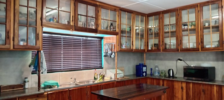 The main house offers 2 or 3 bedrooms, 2 bathrooms, a formal lounge, open plan lounge/dinning and farm size kitchen area, pantry and seperate laundry room. The open plan, farm size kitchen is defenatly the heart of the home and will make meal preperation and dinner time with family or friends a very memorable event. The kitchen is equiped with lots of cupboards, finished in beautiful ever lasting black wood. The other other devision offers 2 bedrooms, a bathroom, lounge and TV room with a beautiful view and access to the back garden.