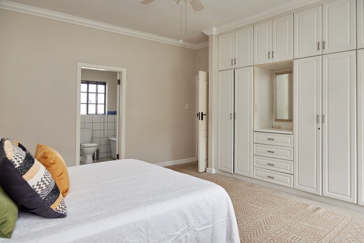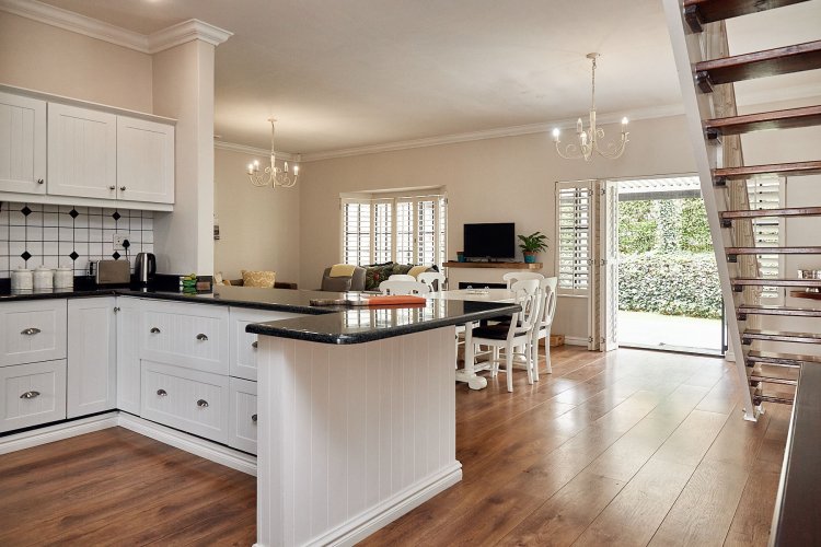The home comprises three generously sized bedrooms, three bathrooms, and an additional guest toilet. The open-plan living and dining area flows seamlessly onto a large, secluded verandah, overlooking a neat, grassed garden — ideal for relaxed outdoor living and entertaining.