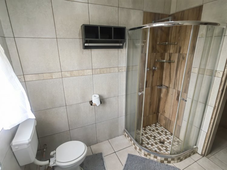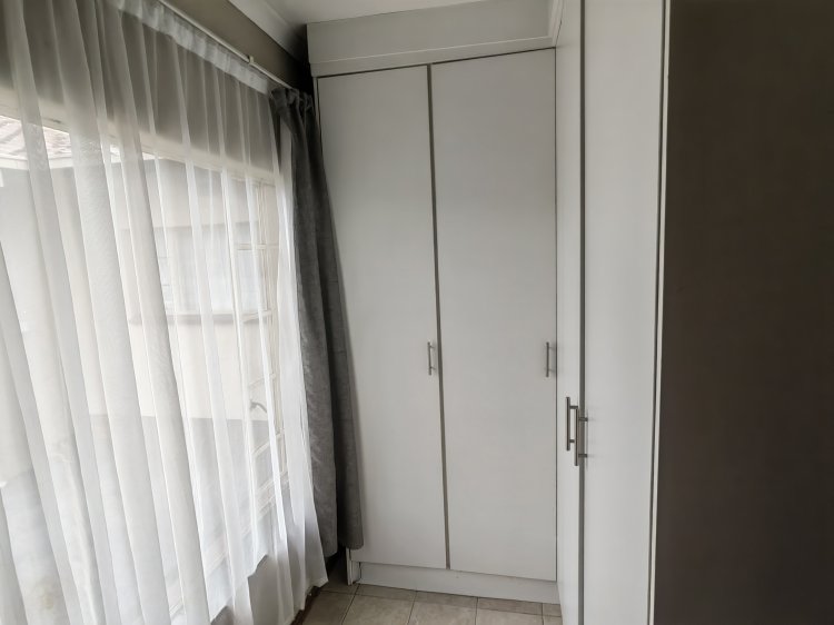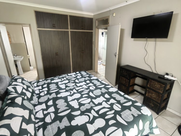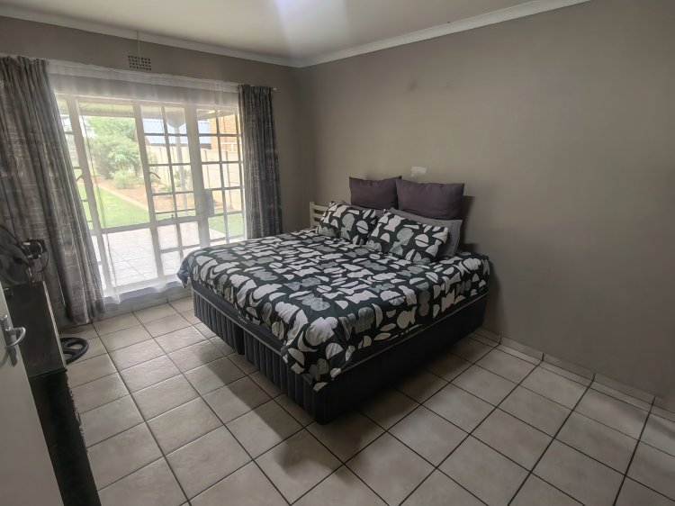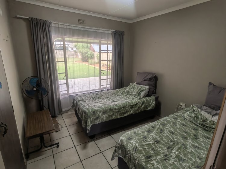 A spacious living room with an aircon Dinning room Spacious, neat kitchen 3 bedrooms with build-in cupboards Main bedroom with an on-suite bathroom Laundry room with plenty of cupboards Build-in braai Potential flatlet Big backyard Very neat yard Automated double garage with a lot of parking space Prepaid electricity