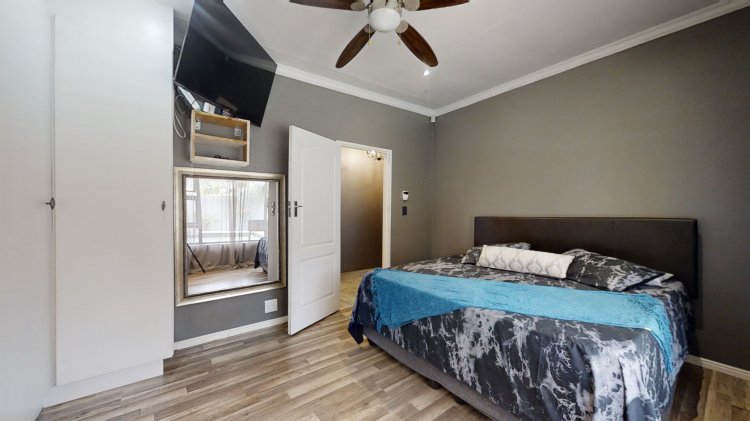 Adding exceptional versatility, the property includes a separate one-bedroom flatlet with an open-plan kitchen, lounge, and dining area. The flatlet offers a spacious bedroom with wall-to-wall cupboards, along with a bathroom and its own laundry area — ideal for extended family, guests, or rental income.