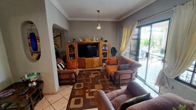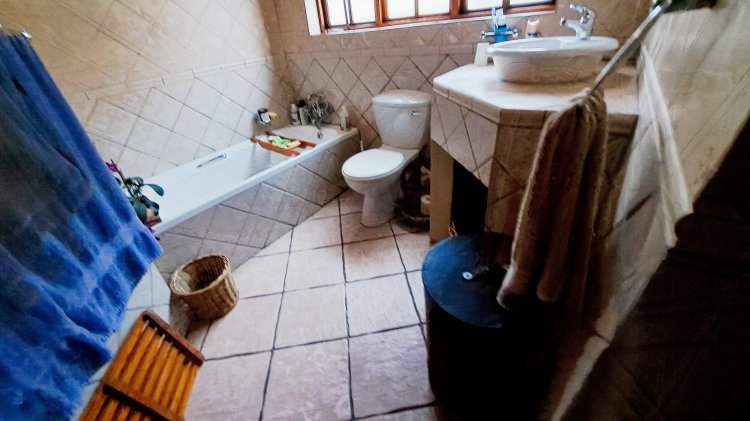 Accommodation includes three generously sized bedrooms with built-in cupboards. Two bedrooms enjoy en-suite bathrooms, providing privacy and comfort, while a third bathroom services guests and the remaining bedroom.