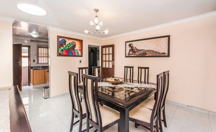 Located in the quiet suburb of Meadowlands, Ext 12. Just recently renovated, the ground floor offers 3 bedrooms with BIC, 2 bathrooms, an open-plan lounge and dining with a fireplace and skylight. Fully kitted kitchen with granite tops and ample storage. Upstairs, you get a full flatlet that offers an en-suite bedroom with a shower, basin, and toilet. Open plan lounge and kitchen. all with porcelain tiling.