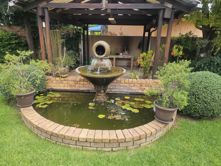 The main double-storey house offers 4 spacious bedrooms, 2 bathrooms, a well-appointed kitchen, laundry, scullery, and a covered patio under roof, ideal for comfortable family living. Beautifully landscaped garden with water fountain.