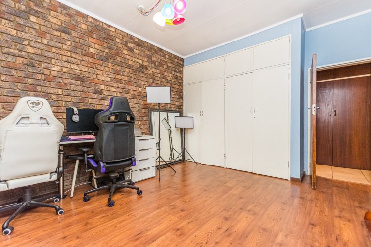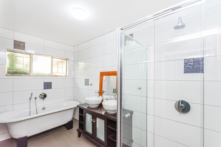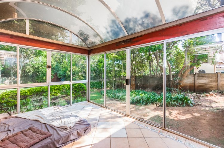 A separate study provides a quiet and comfortable work-from-home space. The home features four spacious double bedrooms, all fitted with built-in cupboards and laminated flooring. The main bedroom is a true retreat, offering generous space and an en-suite bathroom with both a bath and separate shower as well as an aircon. From this beautiful room, you can access a light filled sunroom, with its own glass sliding doors overlooking the garden. The remaining three bedrooms are serviced by a full bathroom, also fitted with a bath and shower, along with an additional separate guest toilet.