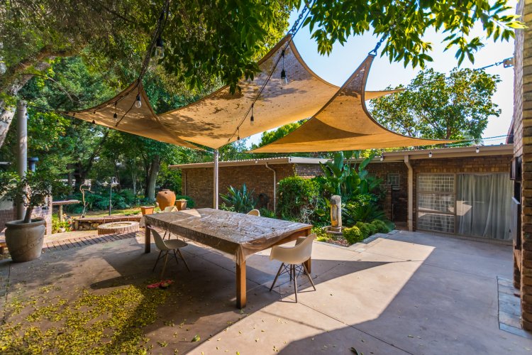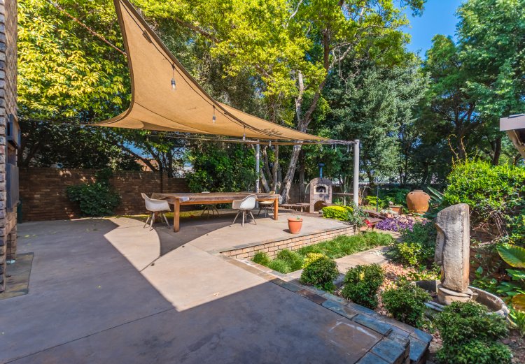 The beautifully maintained garden wraps around the home and offers a peaceful outdoor escape, enhanced by an automated sprinkler system, two water tanks, and a Wendy house with electricity.