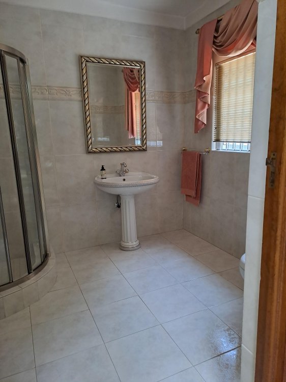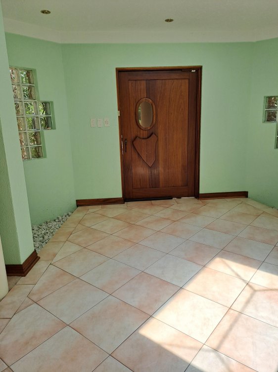 Stunning large Manicured garden and family home in the safe and enclosed East Village/Sunward Park. 5 large bedroom, 6 bathrooms, 4 garages, beautiful gardens and pool. SPECIAL FEATURE: Aircon, Bar, Fire place, Jacuzzi, Skylights, Wine Cellar, Braai Area, Covered Patio,