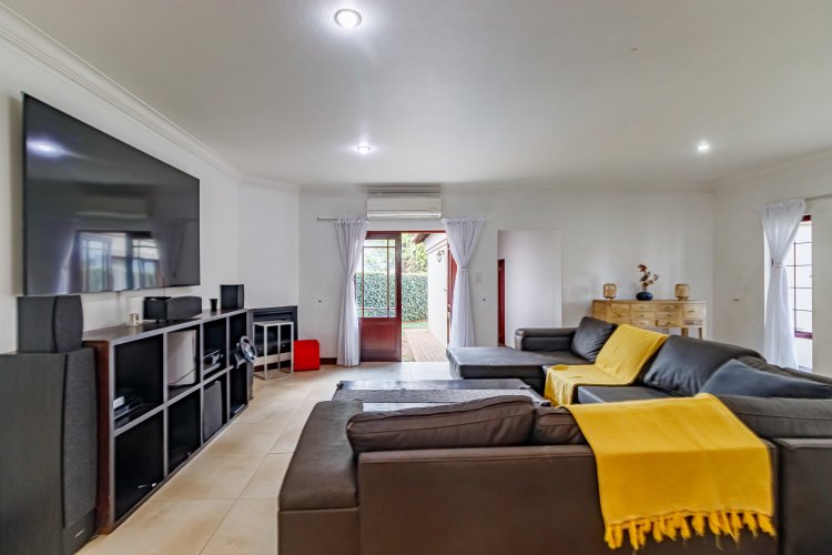 This beautifully designed double-storey home in sought-after Midstream Estate blends space, flow, and refined finishes. A striking central staircase forms the heart of the home, seamlessly connecting expansive open-plan living areas. The ground floor welcomes you with a light-filled lounge and dining space featuring a fireplace, air conditioning and seamless access to an enclosed entertainment area, patio and built-in braai overlooking the pool—perfect for relaxed family living and entertaining. The modern granite kitchen offers a breakfast counter and separate scullery, while two versatile bedrooms open onto the garden and can easily serve as offices or a playroom. Upstairs, five additional bedrooms provide comfort and privacy, including a luxurious main suite with a private lounge area, air conditioning, and his-and-hers cupboards, complemented by stylish bathrooms with upmarket finishes.