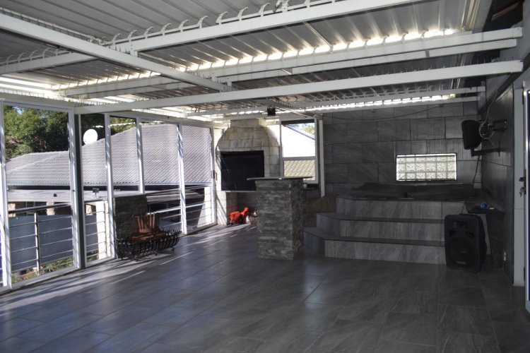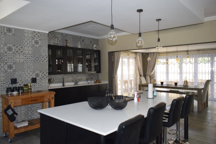 Let do the tour of the 1st property 1st floor- 4 large bedrooms 2 modern bathrooms balcony with entertainment area, include build bar. ground floor modern kitchen which overlooks lounge, dining room guest toilet plus scullery and laundry area patio with pool. Extras- Solar geyser Solar 8kv with 10 panels Solar pool 4 air conditions Gas stove Jojo water tanks Garage to fit 6 cars