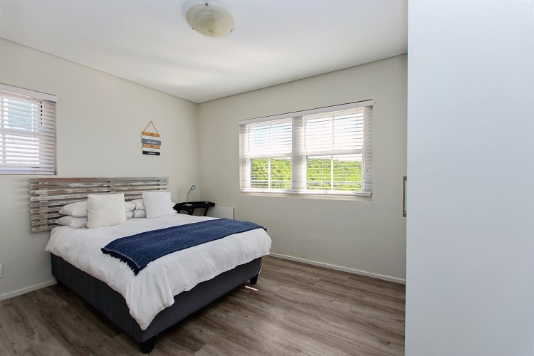 The upper level mirrors the layout of the lower floor, with a balcony off the living area and an undercover built-in braai, providing stunning views.