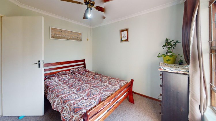 Welcome to this well-maintained and inviting home, offering a blend of comfortable living spaces, practical features, and great flow throughout. Key Features: • Large Double Garage A generously sized double garage provides secure parking and includes a rear drive-through door, allowing easy access to the backyard. A convenient pedestrian door leads directly into the home. • Spacious Living Area With Built-In Braai Step inside to a warm and welcoming living area featuring tiled floors, a built-in braai — perfect for entertaining — and an aluminium sliding door that opens to the backyard. • Open-Plan Dining & Kitchen Just a few steps up from the living room, the open-plan dining area flows into a neat kitchen fitted with cupboards, melamine countertops, and tiled floors. • Family Bathroom The tidy family bathroom includes a shower, toilet, and basin. • Comfortable Bedrooms • Main Bedroom: Carpeted, fitted cupboards, and a ceiling fan for year-round comfort. • Second Bedroom / Study: Currently used as a study, also carpeted and includes fitted cupboards. This home is ideal for first-time buyers, downsizers, or anyone seeking a practical, low-maintenance property with great indoor-outdoor flow.