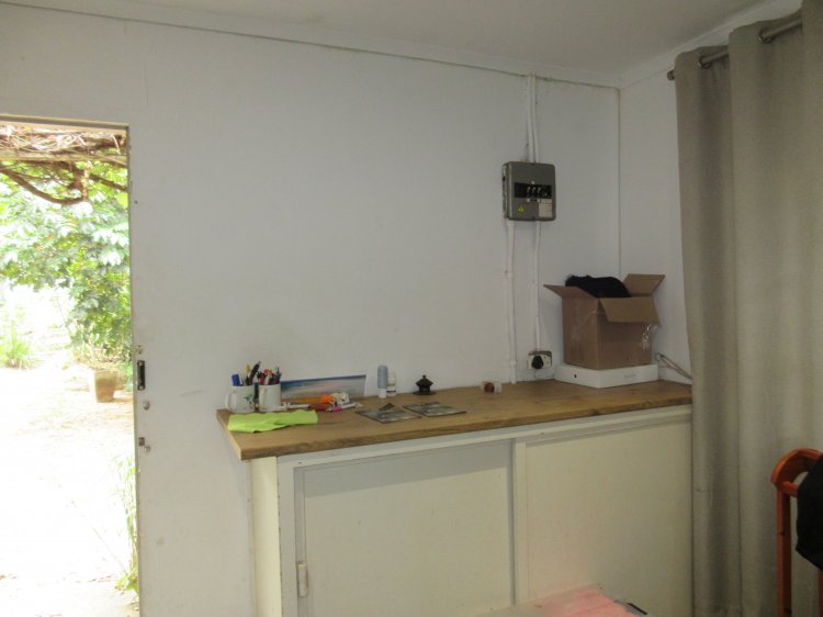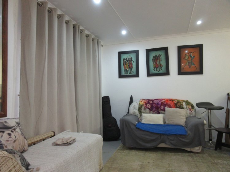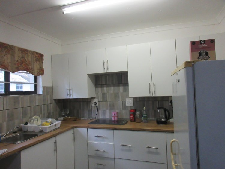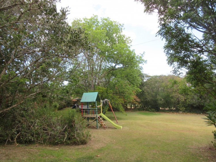 An absolute gem of a house, right next to the primary school! Three bedrooms with en suite bathrooms, two lounges, a dining room,, separate kitchen and a huge covered outdoor entertainment area, with a braai area,, a double garage, a double carport and a spacious flat. Then, we have over a hundred thousand litres of rainwater storage capacity, a splash pool and the capability to swap from solar to Eskom, should the power be insufficient. Also one geyser is solar and the other is on Eskom, so big electricity saving are a feature. There is a huge picture window in one lounge, which gives beautiful views of the front garden. The back garden features a chicken coop, and aviary, two veggie gardens and if this is not sufficient to tick all your boxes for the dream home, there are some fruit trees, including Mulberries, lemon, oranges, naartjies , grape fruit, pecan nuts, avocado, pears and bananas. On top of all of this the yard is fenced and there is remote controlled access to the property, and should you so desire, there is also municipal water.