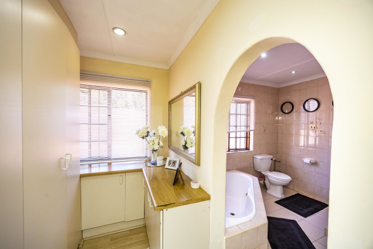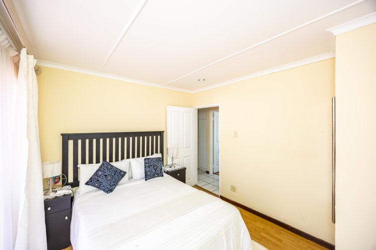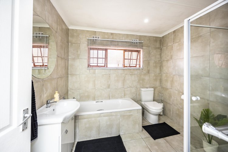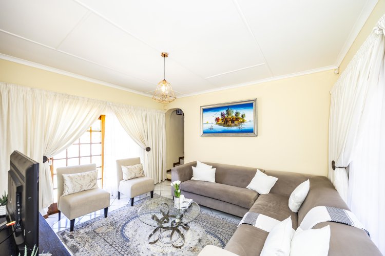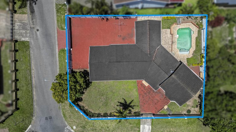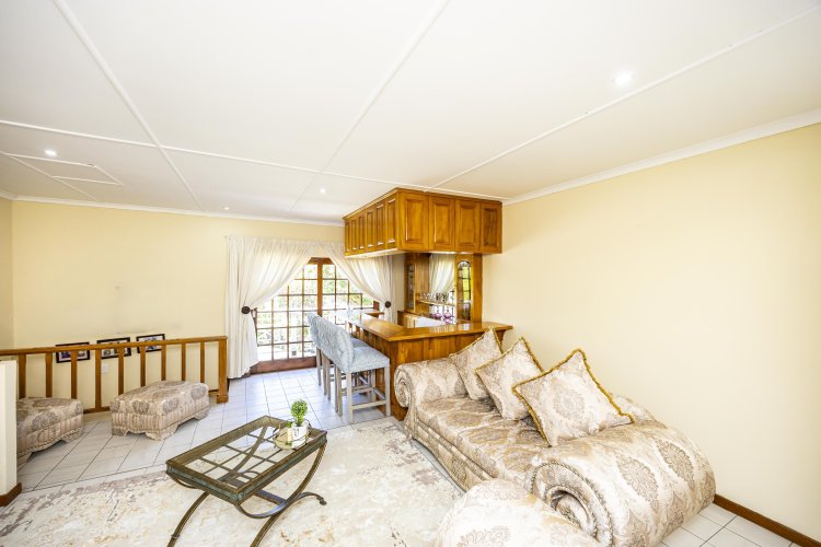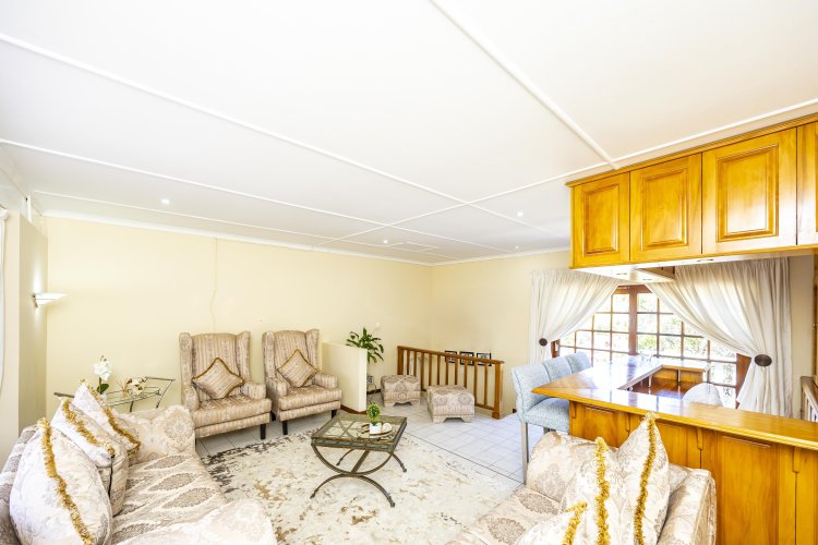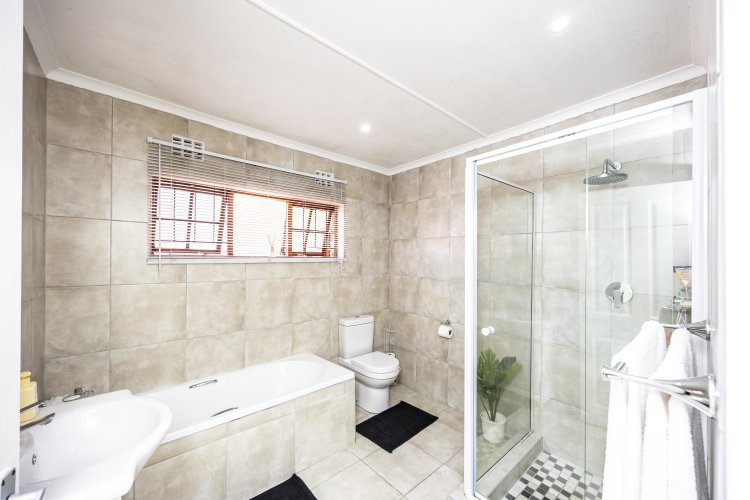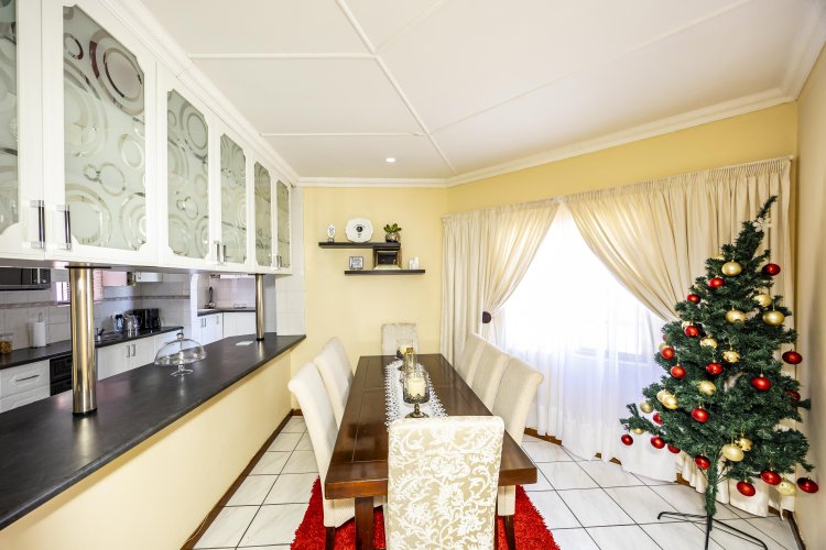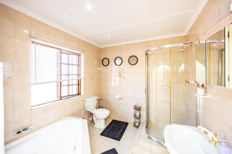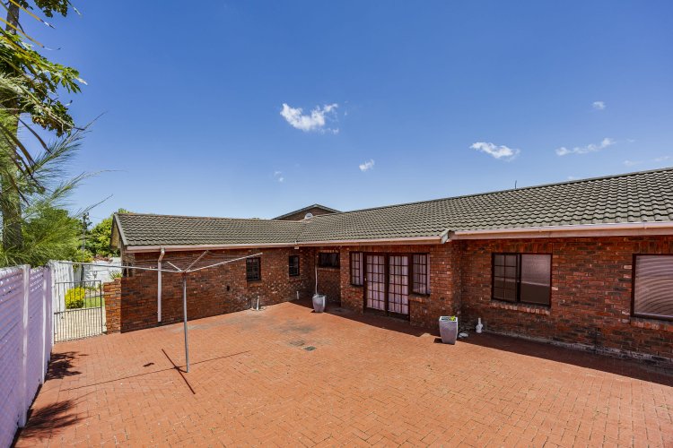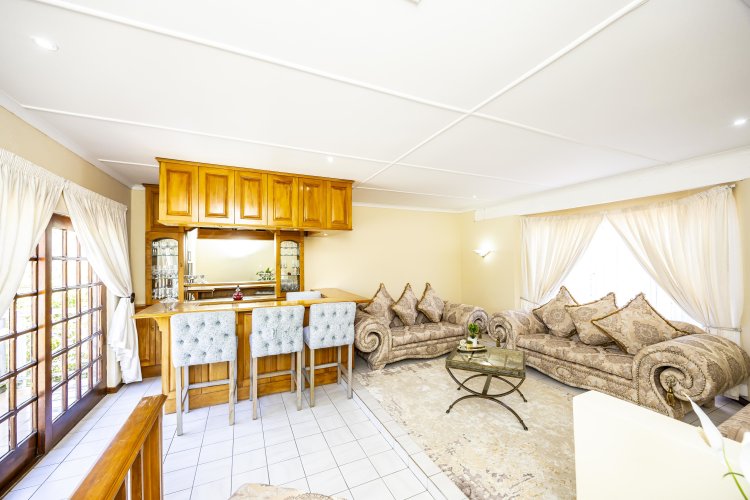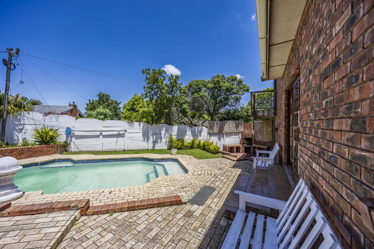 • Bedrooms: Four bright and well-sized bedrooms, each fitted with built-in cupboards. • Bathrooms: Two full bathrooms, of which one is en suite with a separate dressing room and built in cupboards. • Living Areas: TV lounge opening out to the pool area and a private upstairs lounge with a built in bar as well as a balcony. • Kitchen: The dining area is connected to the kitchen with a pass-through counter. The spacious galley style kitchen offers plenty of counter and cupboard space, built in eye level ovens, a glass stove top and extractor fan. There is a separate scullery area with plumbing for a dish washer and washing machine. • Swimming Pool: A sunlit, sparkling pool—your private oasis for summer relaxation. • Garden: Fully walled, well maintained garden with ample space for kids, pets, and outdoor entertainment. • Parking: Excellent secure parking with a double automated garage, extra space for caravans/boats, and two separate driveway entrances. • Expansion Potential: Large corner plot offers exciting opportunities to add a granny flat, extend living areas, or enhance outdoor features. • Construction: Low-maintenance, face brick exterior. Tiled and laminate flooring throughout • Extras: Outside room with a shower, basin and toilet, external door leading from the garage, built in braai area.