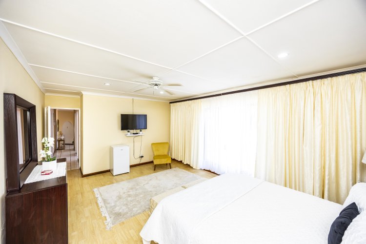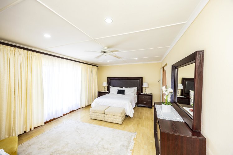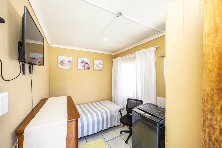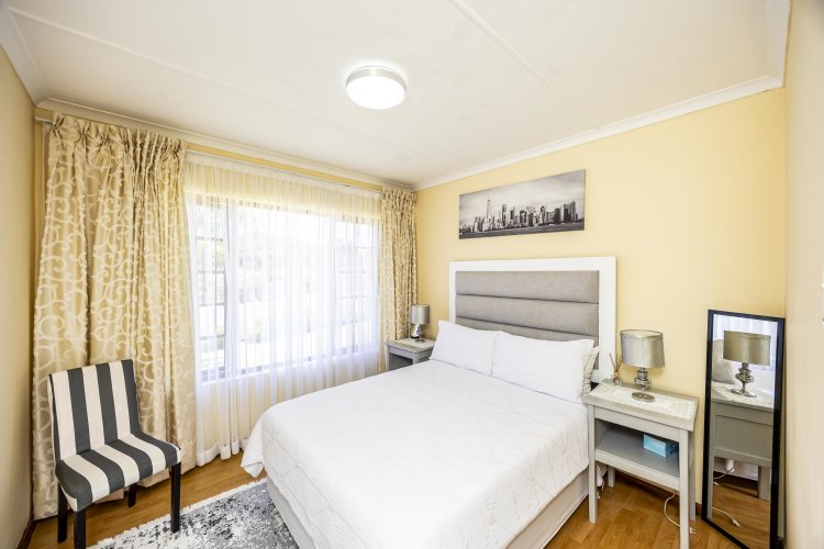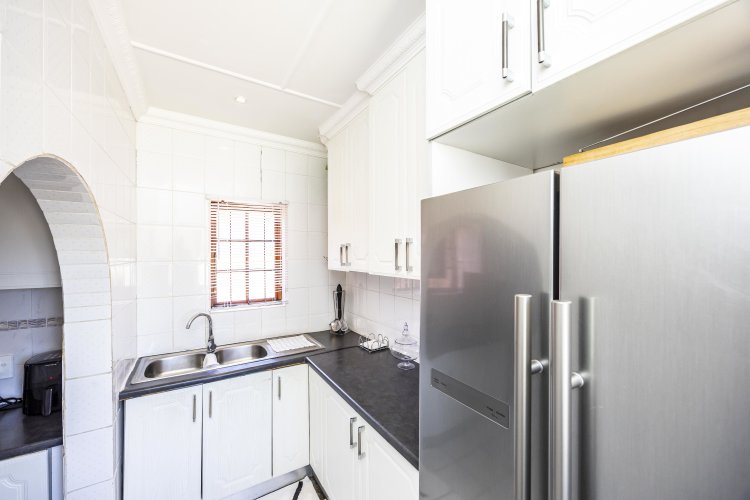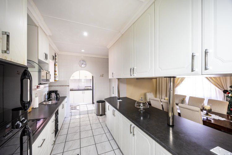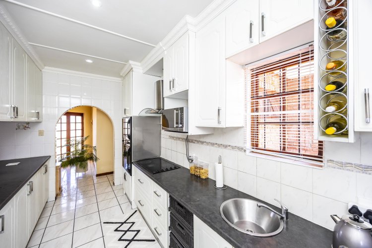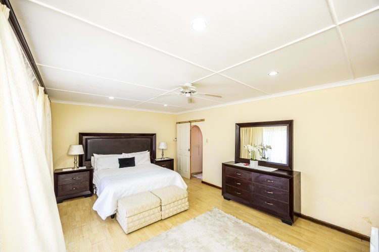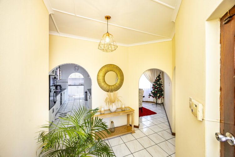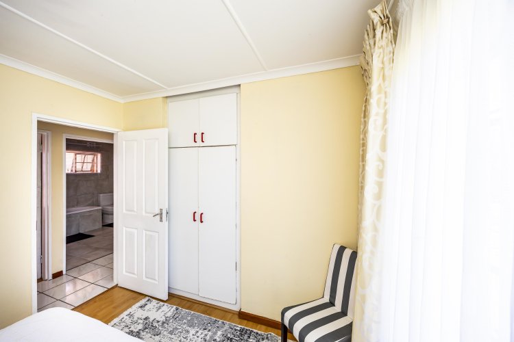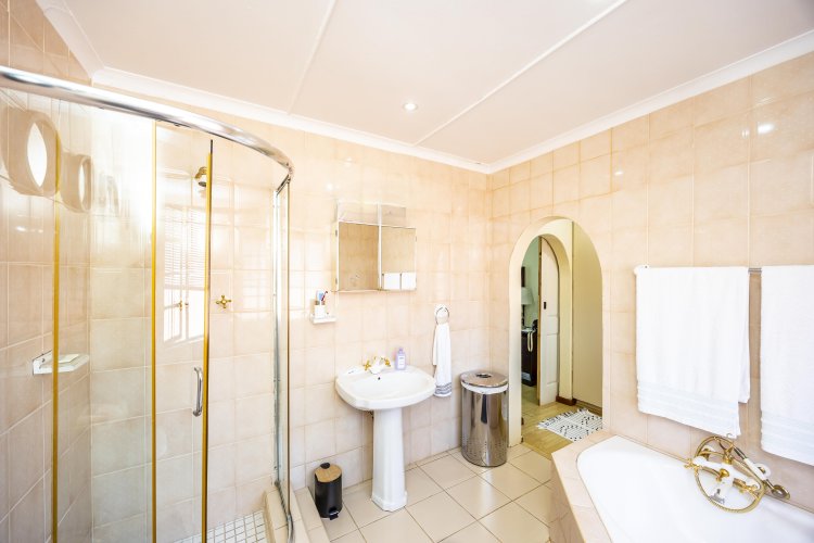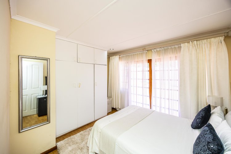 • Bedrooms: Four bright and well-sized bedrooms, each fitted with built-in cupboards. • Bathrooms: Two full bathrooms, of which one is en suite with a separate dressing room and built in cupboards. • Living Areas: TV lounge opening out to the pool area and a private upstairs lounge with a built in bar as well as a balcony. • Kitchen: The dining area is connected to the kitchen with a pass-through counter. The spacious galley style kitchen offers plenty of counter and cupboard space, built in eye level ovens, a glass stove top and extractor fan. There is a separate scullery area with plumbing for a dish washer and washing machine. • Swimming Pool: A sunlit, sparkling pool—your private oasis for summer relaxation. • Garden: Fully walled, well maintained garden with ample space for kids, pets, and outdoor entertainment. • Parking: Excellent secure parking with a double automated garage, extra space for caravans/boats, and two separate driveway entrances. • Expansion Potential: Large corner plot offers exciting opportunities to add a granny flat, extend living areas, or enhance outdoor features. • Construction: Low-maintenance, face brick exterior. Tiled and laminate flooring throughout • Extras: Outside room with a shower, basin and toilet, external door leading from the garage, built in braai area.