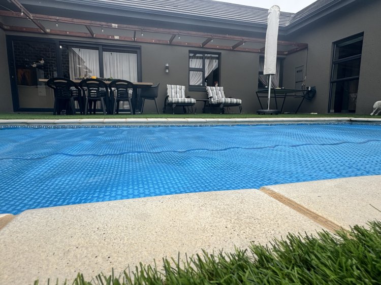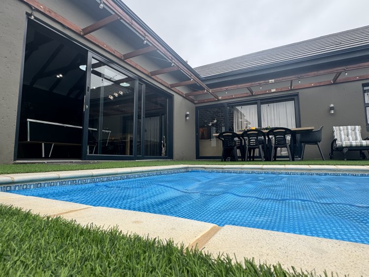 Relaxation begins the moment you step outside: A heated swimming pool powered by solar, wrapped in a beautiful entertainment deck that feels like your own private retreat.