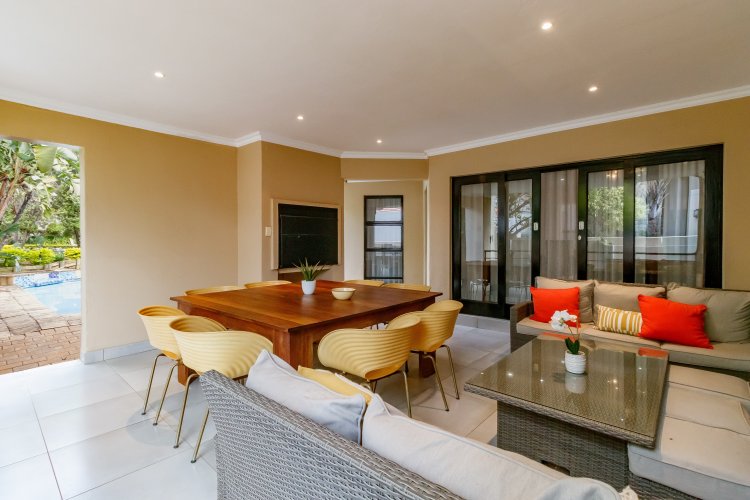 Grand Dining & Entertainment Flow A beautifully scaled dining area effortlessly opens onto a covered patio featuring a built-in braai.