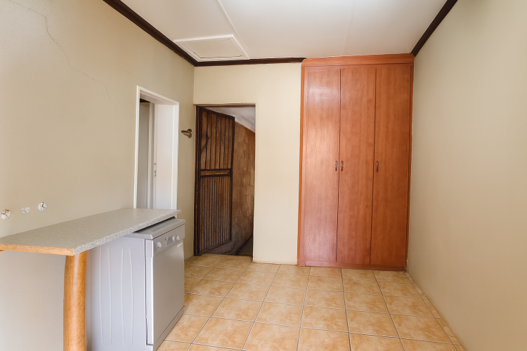 From the living room, you continue into a dedicated dining room and a spacious kitchen with three access points. The kitchen offers ample cupboard space and enough room for family gatherings and preparing your favourite meals.