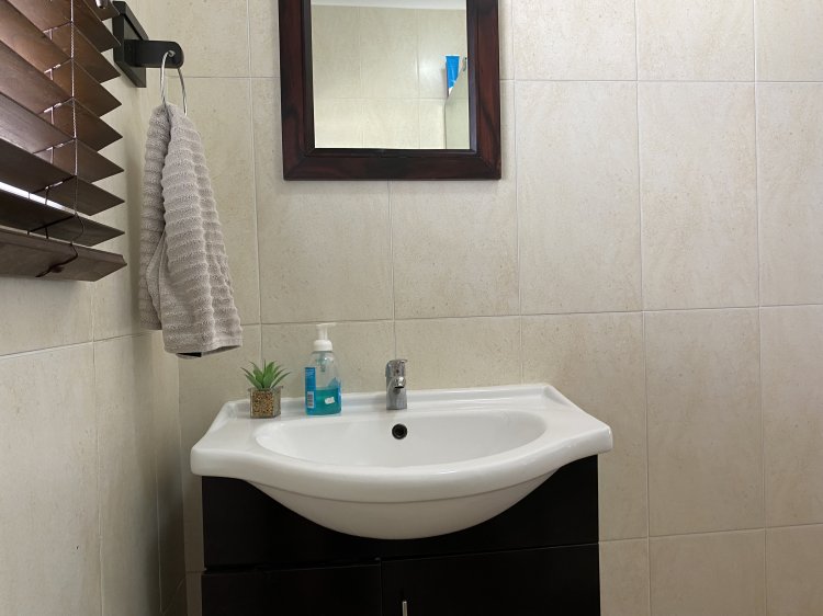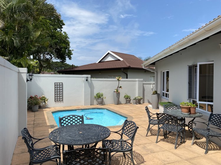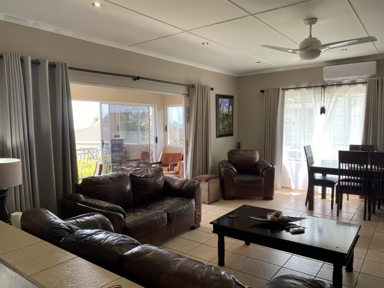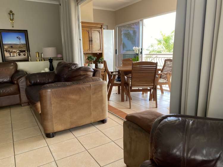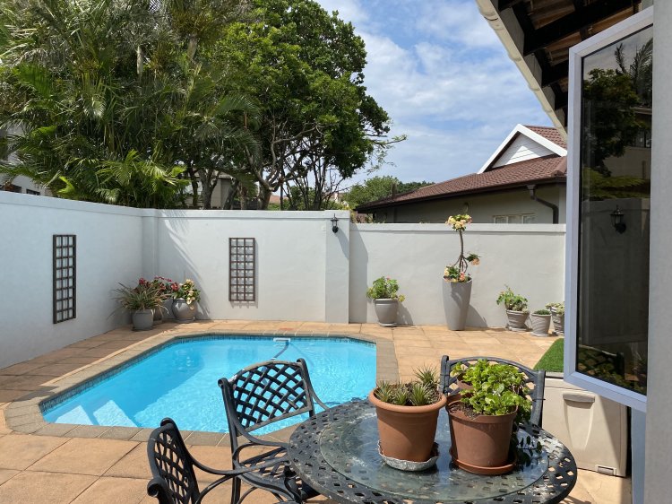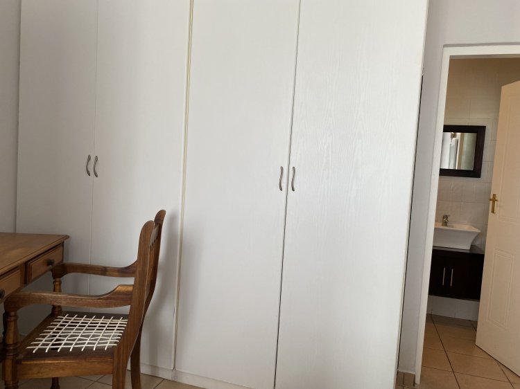 Pretty, neat, and immaculate. This delightful home offers it all. Quiet location, compact with open living and dining spaces, plus the additional enclosed view patio. The fully fitted kitchen has space for dishwasher and large fridge, Smegg stove offering Electric Oven and Gas hob. Beautiful paved family entertainment area with pool, and walled for additional privacy. Garden JoJo tank and laundry drying area. 2 x En-suite bathrooms, for the main bedroom and guest bedroom downstairs. The family bathroom services the other 2 bedrooms. 2 x aircons, in lounge and main bedroom. Beautifully maintained and ready to move in - a surprise planted garden and green space. Double auto garage, plumbed for washer / dryer. Back-up invertor for your convenience. 2 - 3 Parking spaces for visitors. Lock-up and go or stay and play - this property is not to be missed. Pet friendly. 24/7 Security and access control and close to all amenities. Make the call today ..... see you soon.
